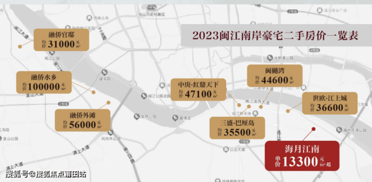 在福州,闽江是精神符号,是身份象征,一江两岸顶豪聚集,房价始终坚挺,据2023年闽江沿岸豪宅二手房房价数据显示,价格巅峰高达70000元/㎡,而同期其他版块均出现不同程度下滑。