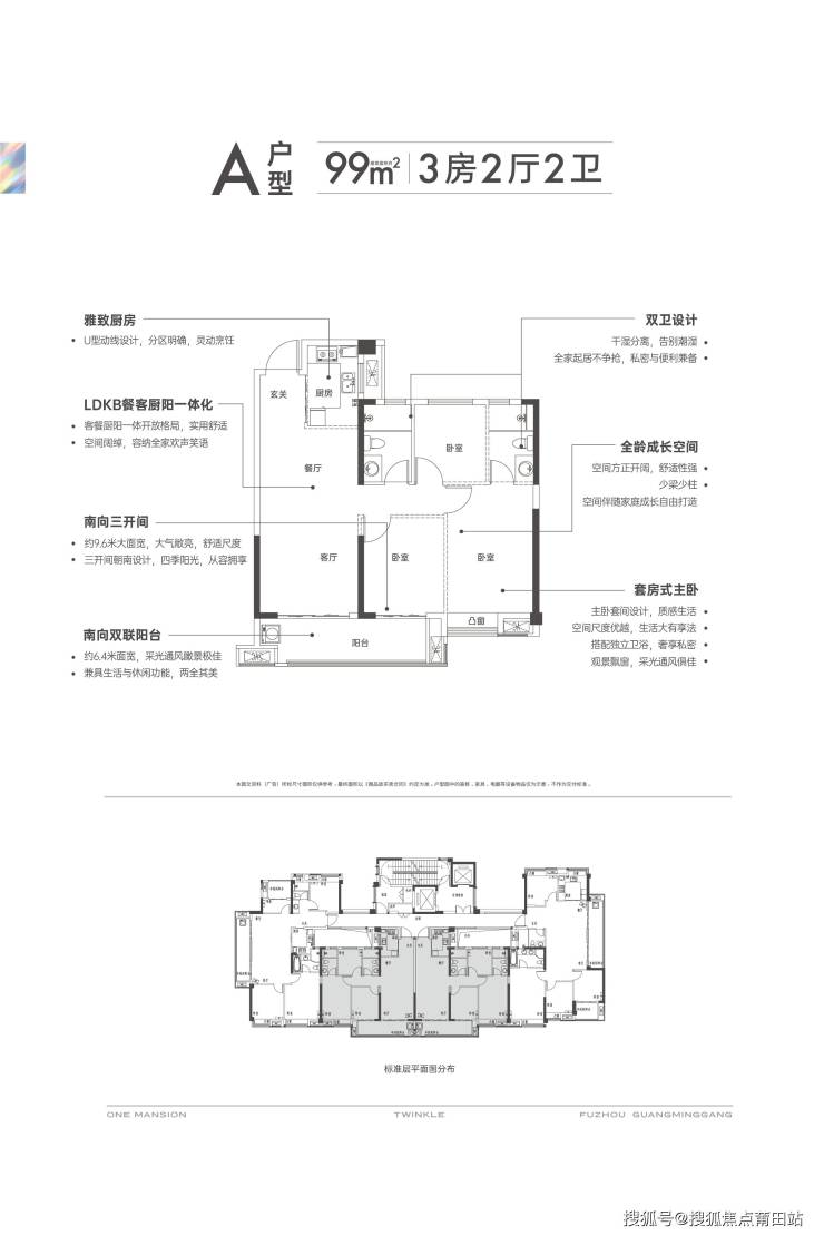 项目的户型设计强调宽屏大宅的概念,南向三开间的布局提供了约9.4米的大面宽,保证了充足的日照和通风。LDKB一体化设计将客厅、餐厅、厨房和阳台融为一体,形成了宽敞明亮的生活空间。