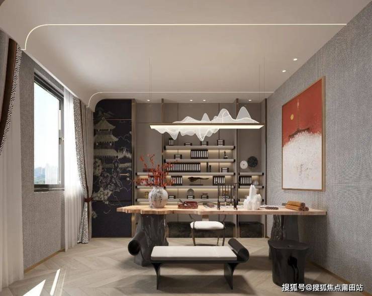 堪比次卧的家庭书房,墨韵风雅,书里芳华,或邀三五知己共鉴丹青墨宝、古董收藏;或谈笑古今天下,如此便是人间至美之事。
