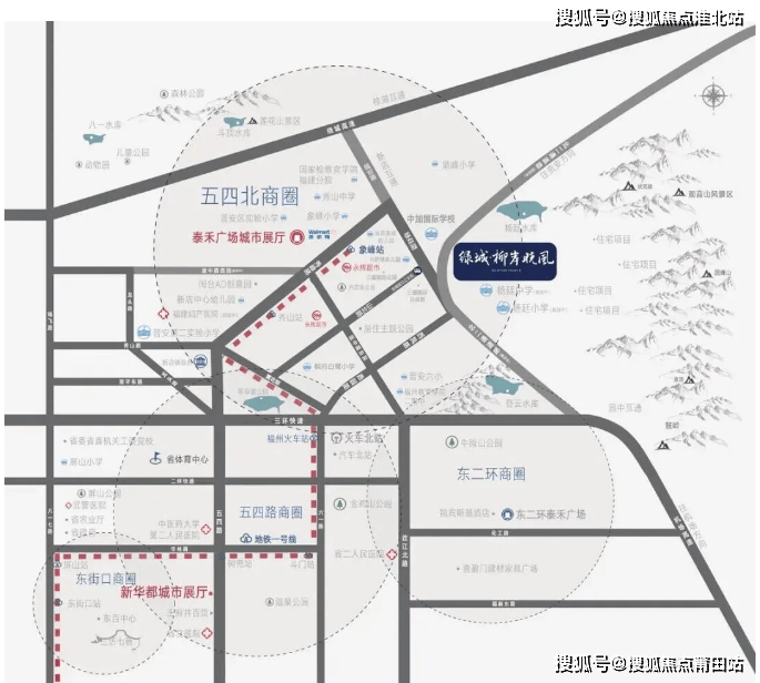 绿城柳岸晓风坐落于福州五四北泉头板块,地理环境优越,交通便捷,东瞰杨庭水库,北临未来北二通道,距离东二环商圈车程只需5分钟,距离地铁口秀峰站约2公里,10分钟可达东街口商圈;区域内还有五四北泰禾广场、中加国际学校、晋安实验小学、象峰中学、规划中的杨庭中学和福建省妇产医院、森林公园、莲花山和观音山风景区等商业、教育、医疗和公园资源,配套丰富,是福州真正宜居的后花园。