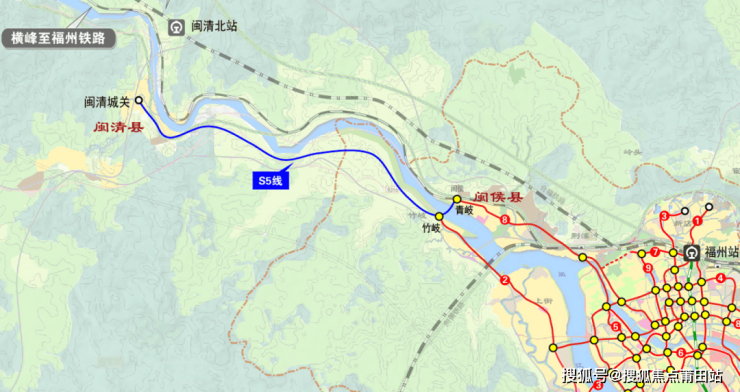 其中,市域S5线规划起迄点为闽侯竹岐至闽清城关,全长32.7公里,车站7座,平均站间距5.45公里,功能为福州城区至闽清市域放射线。