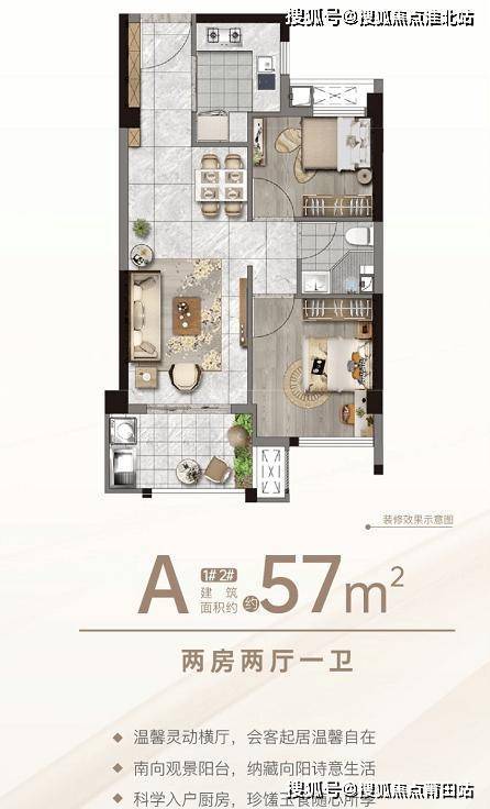 两房两厅一卫|建筑面积约:57㎡