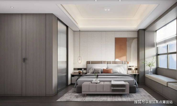 作为老人房,要有良好的朝向和比较宽敞的空间。这对促进老人的新陈代谢、增强体质十分重要。这间卧室为南向的房间采光充足,这个窗户面对的是我们洋房和高层园林景观,景观视野好,而且因为朝向小区,也会比较安静。