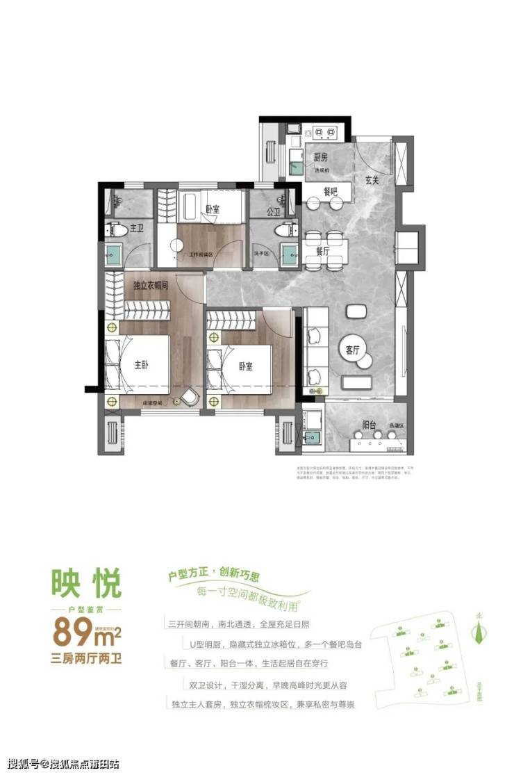 新投·映南台在户型设计上同样下足了功夫。项目提供多种户型选择,以满足不同客户的需求。起步户型约89㎡的三房设计,不仅得房率高,还特别在客厅安排了专有的冰箱位,为厨房预留了更充分的烹饪空间。