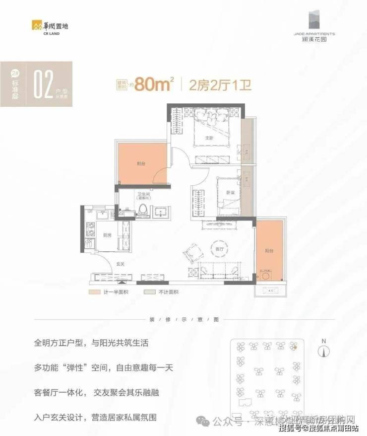 3:户型设计实用,最小80平就能做到3房,而且有个经典户型80平就能做到南北通透,这个户型在大亚湾属于稀缺户型!