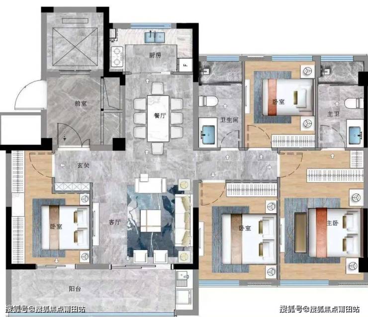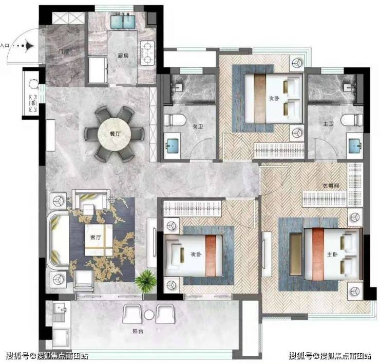 (建面约)105㎡三室两厅两卫优居户型· 三面采光,全明通透,居住舒适度更胜一筹· 三开间朝南,用阳光唤醒一天的活力· 套房式主卧,方寸之间尽赋一室美好·约6.6米南向阳台,拥揽春华秋实四季人生景致