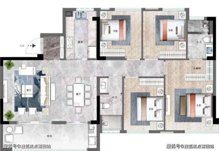 (建面约)131㎡四室两厅两卫阔景户型· 全明户型,三面采光设计,让阳光与生活相伴· 双阳台设计,拥赏双公园风光,品味质感生活· 雅致书房,予以学习、工作更静谧的环境· 套房式主卧,可设衣帽间及卫浴,赋予生活更高品质