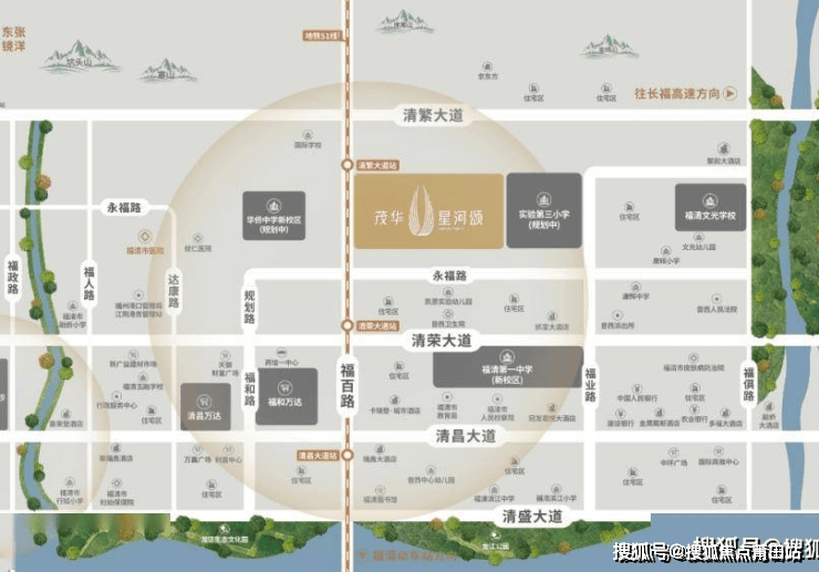 茂华·星河颂,【颂】系全新音西首个4代奢宅!以近200亩豪宅大盘形象,雄踞传统富人区——音西双万达之上。近城市中央绿轴,百亿中央商务区在侧。可直通两馆一中心,汇聚鼎级配套资源!家门口即S1地铁清繁站(规划中),临双福高速(规划)出口,可通达全城,拥抱大福州都市生活圈。1公里即虎溪公园,近邻实验第三小学(规划中),聚和酒店在侧,真正做到静观繁华,尊享静谧。