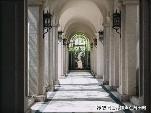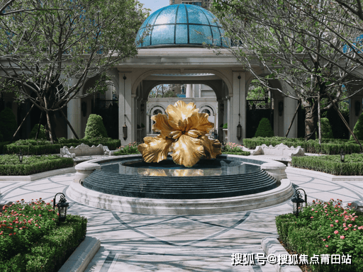 近 50 米法式门庭,5.5 米整石立柱、中央水景,归家仪式拉满。