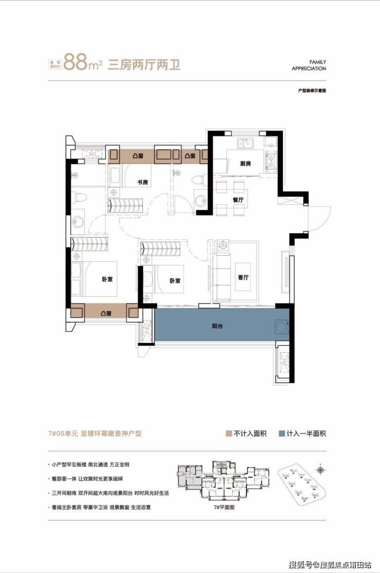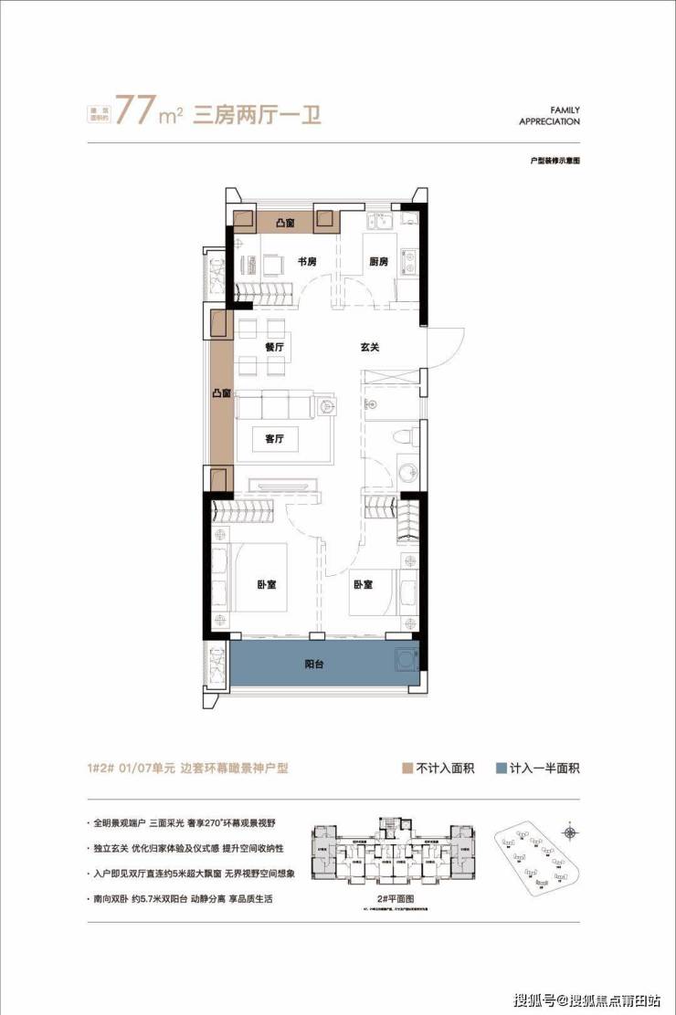 1、全明户型三房,动静别离的设计,通风采光更胜一筹,客厅外接5.8米超大阳台,视野宽广