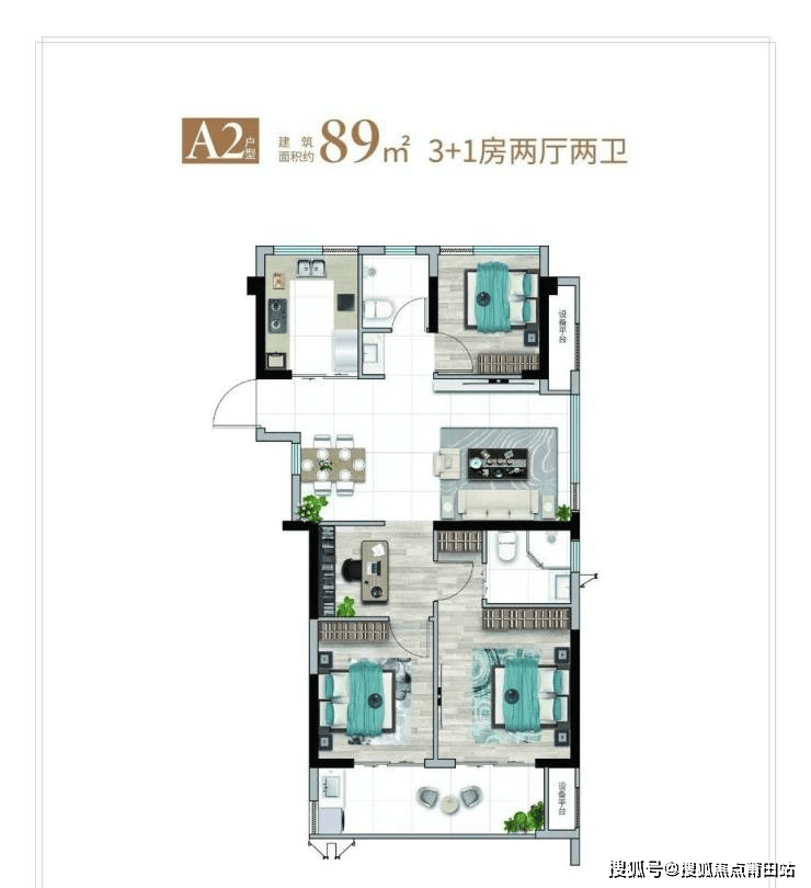 楼盘主推建筑面积约69-89㎡全明户型,双开间阳台,高空间利用率。