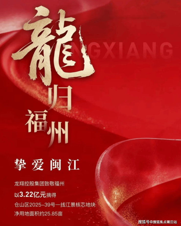 今年9月30日,龙翔控股集团旗下福州兴景置业有限公司以底价3.22亿竞得2025-39号江南CBD出让地块十一,成交楼面价10381元/㎡【点击了解>>】。