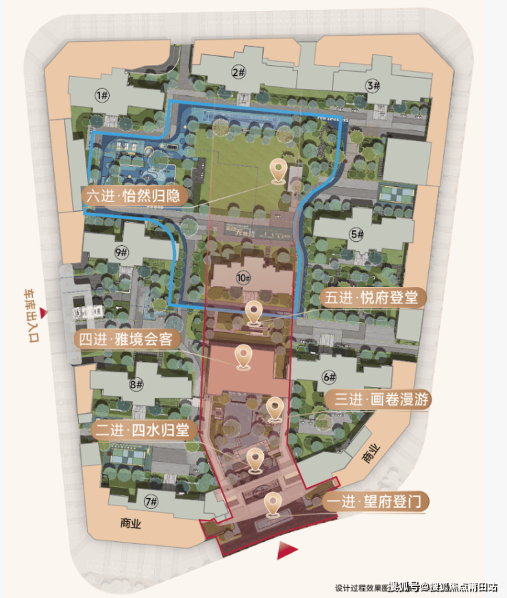 在于以六进园境,构筑归心画卷。从望府登门的庄重礼序,到怡然归隐的私密安闲,风雨连廊串联起中心水苑,一轴六进八园,开启松弛归家之旅。
