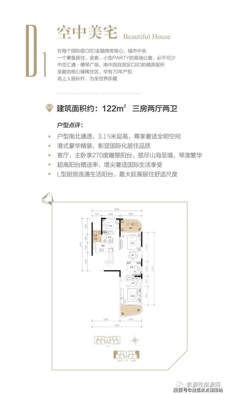 建面约122㎡南北通透三房,横琴金融岛央企匠作产品。空间动静分离,稀缺270°观景阳台,与澳门隔海相望,见证琴澳共融;3.9米大开间,敞阔气度,高端品牌厨卫配置,为国际名仕尊享。