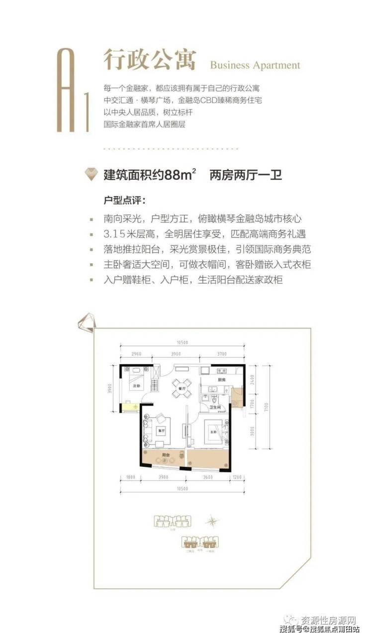 建面约88㎡南向采光,主客卧分离,保持私密性;餐、客厅功能分区布局;超大主卧空间,嵌入式鞋柜、衣柜人性化设计,石材顶奢配置,厨卫高端国际品牌。