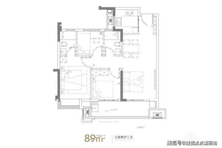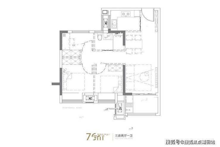 76㎡三房两厅一卫: 在紧凑面积内实现三房功能,空间利用率高,总价控制优秀(门槛约175万),是市区罕见的低总价三房,对年轻家庭或首套房买家吸引力强。