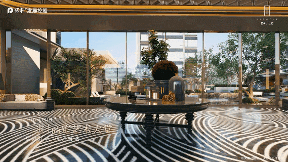 约60米归家门仪,将大门、景观、归家动线一体化设计,点缀艺术光盒、大面积矜贵奢石造景等,以恰好尺度与场景过渡,让归家体验几何式递增。转入高定归家艺术大堂,十字穹顶星光辉映,超80㎡巨幕画框,无界对赏中庭四季水景。置身中庭潮汐水院,端坐下沉式卡座,听叠水潺潺,观绿荫轻拂,心绪瞬间宁静。踱步风雨连廊,光线穿过园林景观倒影在墙上留下剪影,亦是归家路上的曼妙风景。