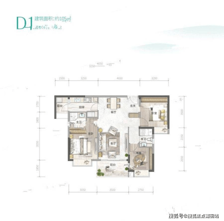 105平米户型:此户型采用三开间朝南的设计,确保了客厅、主卧等主要生活区域的充足采光。然而,书房空间相对局促,且北面缺乏通风,整体布局稍显紧凑。作为中户设计,该户型在采光和通风方面可能存在一定局限,与邻居共享墙体也可能影响居住的私密性。
