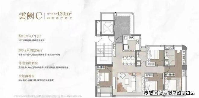 楼盘由7栋15—17层的洋房小高层组成,合计340套,最小面积95平,没有特别小,最大是143平四代住宅,定位是品质刚改/改善型社区,也是同安目前第一个四代住宅!