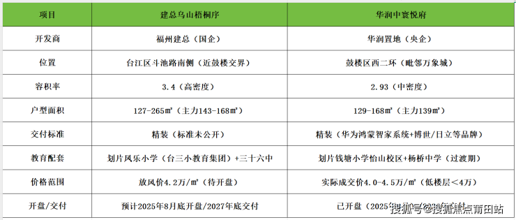 地段结论:中寰悦府占位鼓楼核心,商圈及生态资源更优;梧桐序虽处台江但享双商圈辐射,交通便利性持平,但学区差距显著。