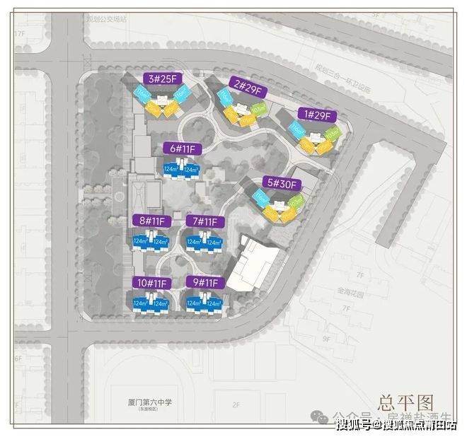 岛内东渡板块20年上新,建发标配大门(65米宽、14米高),规划洋房+高层,高层户型95-103㎡,洋房全124㎡户型。相信也会是个火爆的项目。这次规划了9栋,五栋11层洋房全部做124平的“零公摊”洋房,层高3.15米,有12平的入户花园,使用率103%,2-5层还有阳光露台