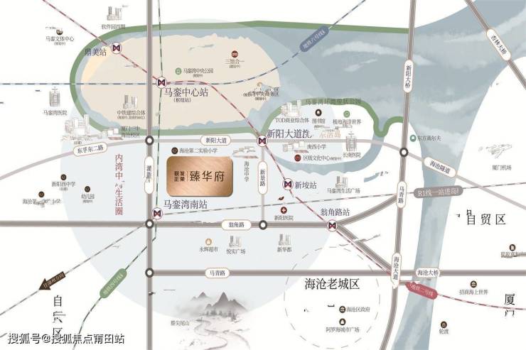 联发臻华府地处海沧马銮湾内湾核心,这一地段不仅风景秀丽,而且交通便捷。项目距离地铁新阳大道站仅约1km,乘坐一站地铁即可到达三地铁交汇站马銮中心站,2/4/6号线串联岛内外,形成了四通八达的交通网络。此外,海沧大桥和海沧隧道双线通车,进一步提升了项目的交通便利性,让居民出行无忧。