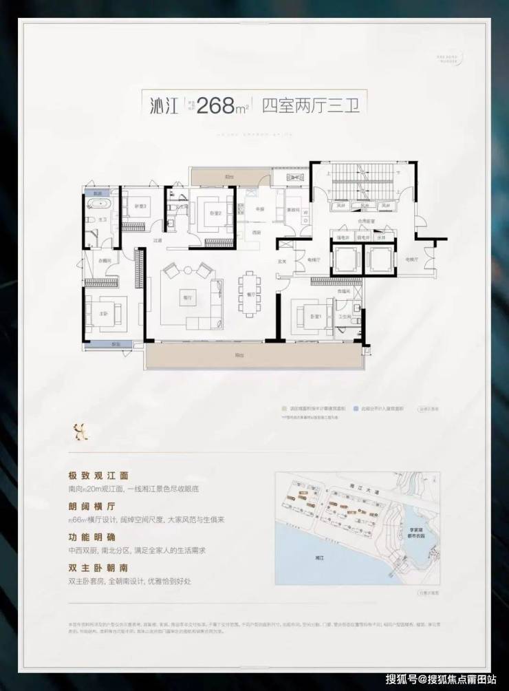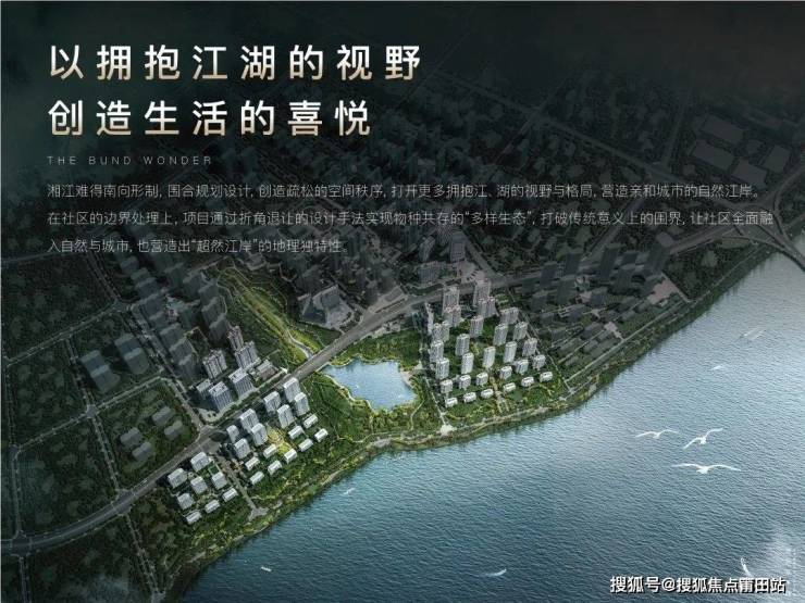 位于长沙滨水新城河东核心区,地处湘江综合服务轴城市发展方向,紧邻金霞城市副中心。占据一线湘江头排江岸景观,融合金融商务、科教文化、人文学风、健康医疗、山水洲城等资源!以罕得的南向面江,围合的规划设计,创造疏松的空间秩序,营造亲和城市的自然江岸。打造“亲江平墅”、“瞰江高层”两款明星产品,配建尊贵生活美学馆、恒温泳池、创新无界客厅、巨幕宽景阳台等一类列高端设计
