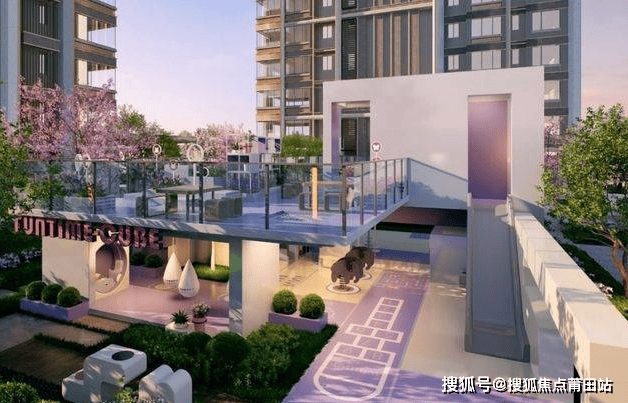 社区配套中央水院、架空层泛会所(含私宴厅、茶室、健身区等)、童玩综合体等,满足全龄生活需求,模糊室内外边界,营造“无界生活”氛围。