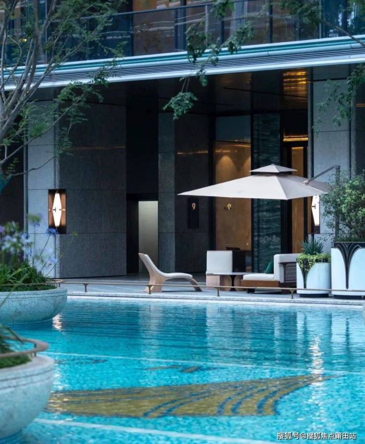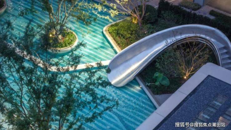 嬉水池才是无界景观的必选项。很多楼盘不做的原因是,嬉水池通常很难像绿城·芝澜月华这样能够做出一种极具高奢感的美。这需要房企对于嬉水池的色彩、纹路与空间关系等环节都要有精确的控制力。