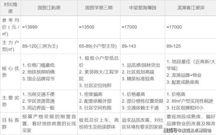 3. 基础居住功能需求者:对顶尖学区、高端社区环境无强烈要求,满足基本生活、居住空间和国企品牌保障即可。
