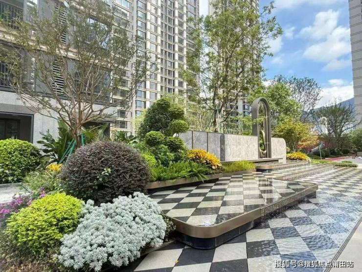 宽绰楼间距带来极佳视野与通透感,约2000㎡中央花园绿意盎然,水系蜿蜒、流水潺潺。