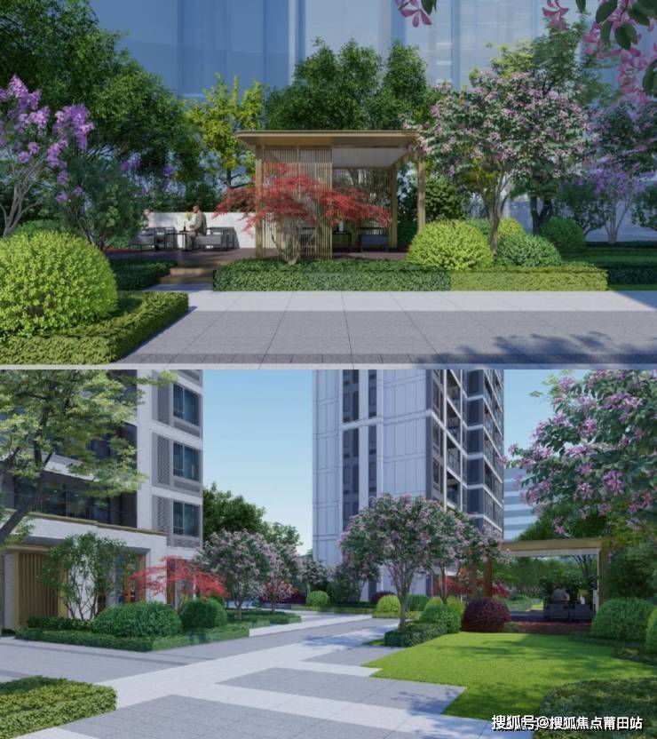 朗阔竹木平台结合阳光草坪,以花树半围合,打造林下会客厅,尊荣社交门面。