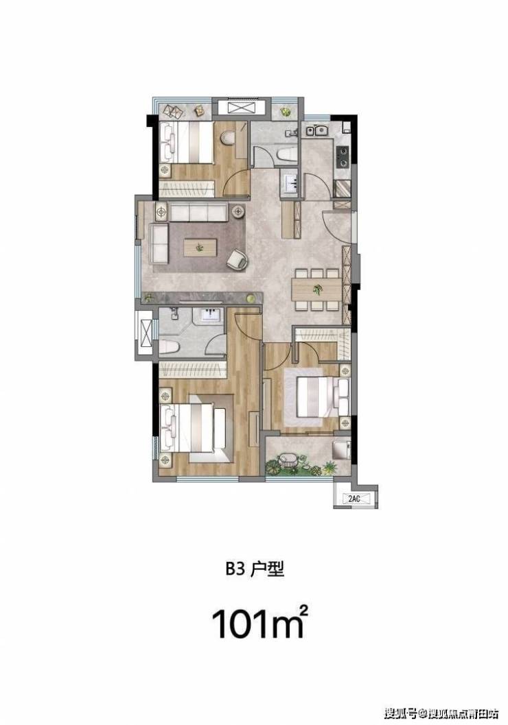【户型】:平层三房