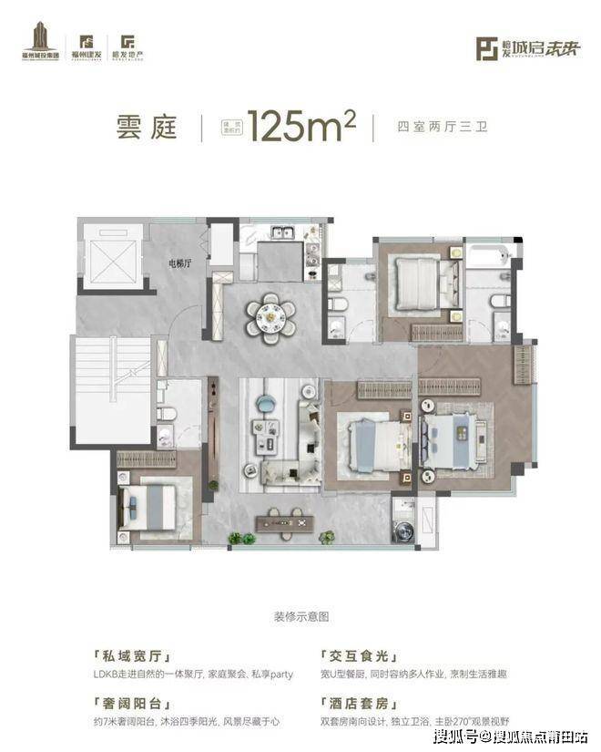酒店式入户大门(50米弧形挑檐)、泗水归堂落客设计、约130米“城市会客厅”等,强调归家仪式感。