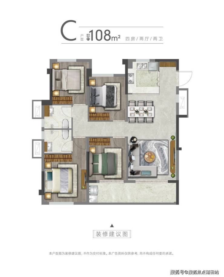 本宣传资料所涉及的户型仅供示意参考,其装修、家具、陈设等非交付标准,不属于交付范围。不同户型的面积尺寸、功能布局、空间分割、门窗/管井形态位置等均有不同;相同户型因为楼栋、楼层、单元等差别,局部结构、面积也可能不同,具体以政府部门最终审定的图纸和销售合同的约定为准。