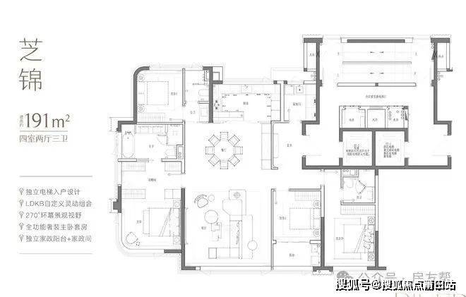 奢装150-220㎡四-六房空间,创新采用270°曲面屏无立柱转角设计,震撼感官,尽赏城市风光;SUV级奢厨、隐奢门庭、一线大牌奢配,以卓越鼎配,犒赏层峰生活。