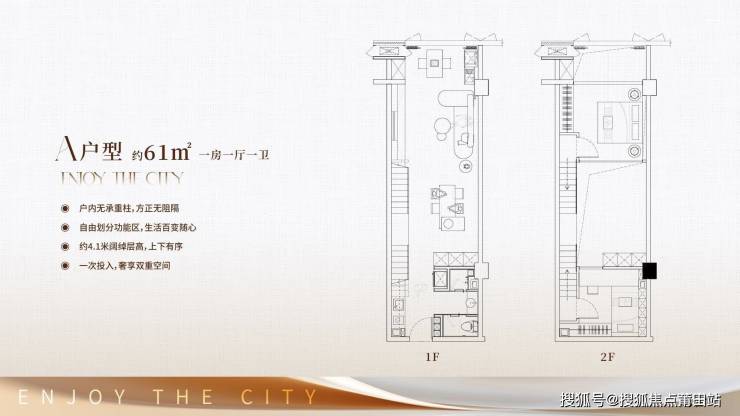 空间:小面积、大功能,4.1米阔绰层高,空间灵动百变,可自住亦可投资