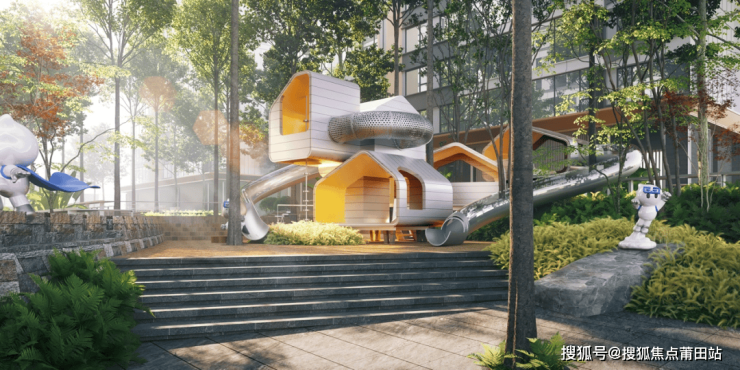 约400㎡的臻享会客水庭,通过叠级水景、会客廊桥以及一些点景雕塑,营造出一种自然疗愈的景观氛围,同时还包含了运动健身设施,让业主在闲暇之余,下楼就可以享受运动的快乐。