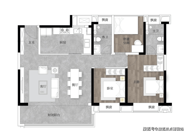 【主卧套房】酒店式主卧套房设计,270°拐角飘窗,专属尊崇