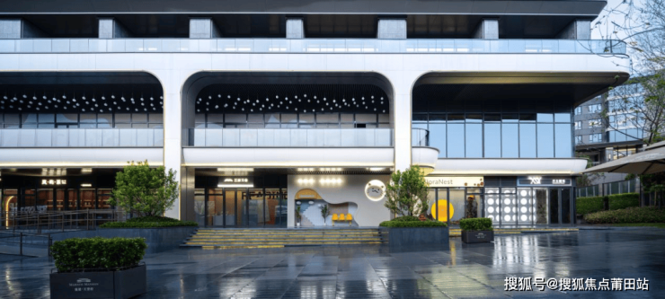 首层立面主要采用石材与铝板的艺术化组合,打造出富有表现力的现代建筑基座。