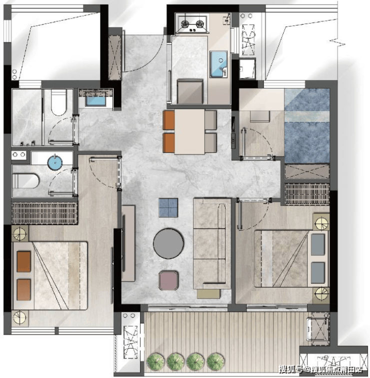 高利用率:零过道浪费,79㎡即可实现三房两卫,满足刚需家庭需求;