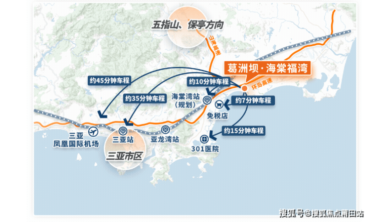 其一,交通上,毗邻环岛高速,能无碍连接三亚高铁站、海棠湾高铁站和三亚凤凰机场等旅途中转站。