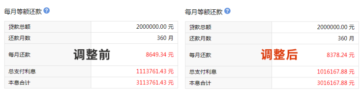 此次降息,月供减少271元,30年利息总额减少约9.76万元。