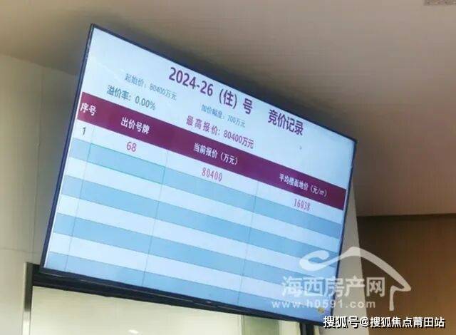 海西房产网(微信公众号:fjhxfcw)通过查询福州土地拍卖记录获悉,2024年7月1日,经过1轮竞价,68号竞买人福州市园开安筑建设有限公司以8.04亿竞得福州宗地2024-26号,楼面地价16038元/㎡。