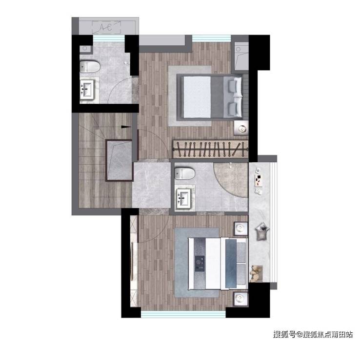 高层92㎡复式:实得约110㎡,三房三卫设计,得房率超120%,局部可改四房,双阳台设计提升实用性。