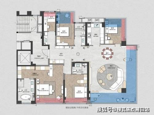 双主卧套房设计,主卧约 30㎡,步入式衣帽间