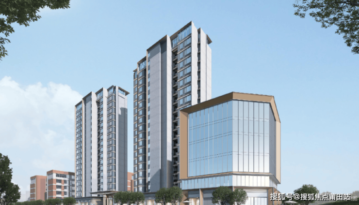 所有户型均为全明设计,保证每个房间都有自然采光。项目住宅建筑外观现代摩登,采用香槟色金属线条与通透天幕玻璃立面,兼具美观与实用性。