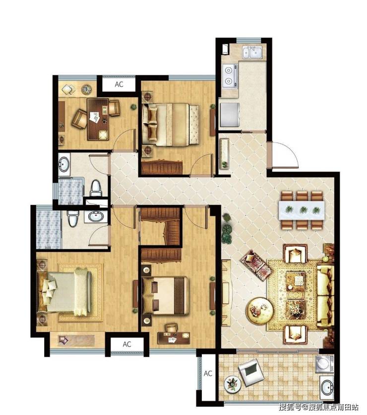 89㎡三房: 经典主流设计,空间利用率高,动静分区清晰,居住舒适度与实用性平衡较好。