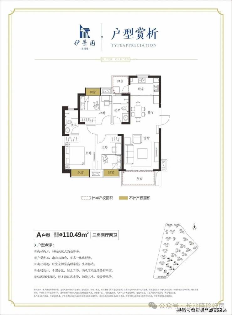 51万方全板楼滨河大盘,110平米三房纯板式设计,南北通透,双阳台设计,阳光和轻风自由进入厅堂。