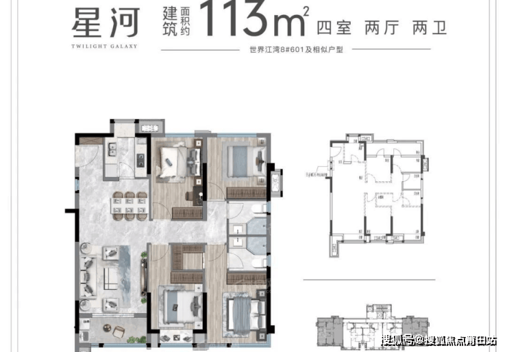 在售面积:约77-113㎡ 三至四房